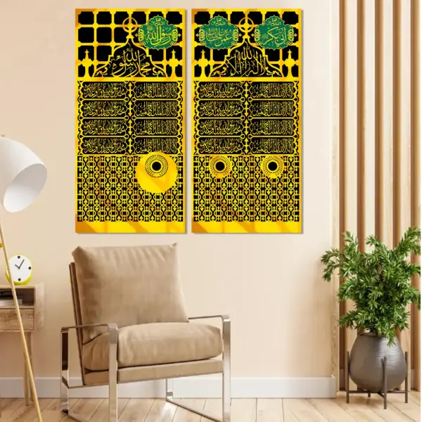 Set of 2 Jali e Roza Rasool ﷺ Premium Islamic Wall Art Apne lounge ya drawing room ki deewaron ko Madinah ki raunaq se bhar dein. Hamara Set of 2 Jali e Roza Rasool ﷺ Premium Islamic Calligraphy Wall Art un logon ke liye design kiya gaya hai jo symmetry aur luxury decor ko pasand karte hain. Yeh matching pair aapke ghar mein aik mukammal roohani aur pur-sukoon mahool peda karta hai.